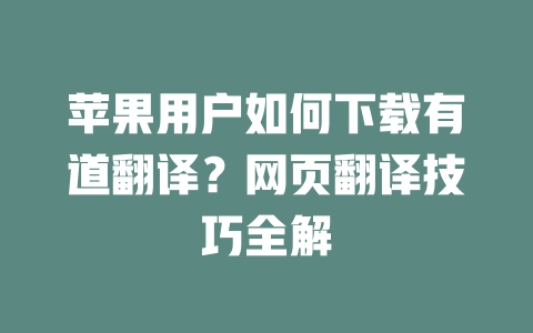 下载有道翻译应用到苹果设备其实非常简单。根据我自己的经验,这里有几种便捷方法分享给你。